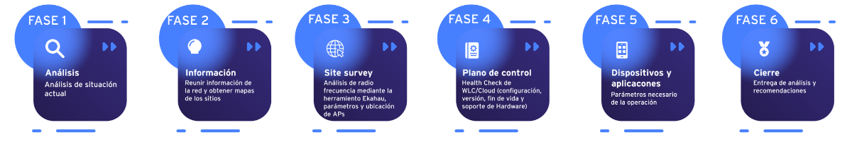 Iniciamos con un análisis profundo de la infraestructura de red actual mediante un Assessment. Desarrollamos plantillas para identificar áreas problemáticas típicas y las oportunidades de mejora en la red.